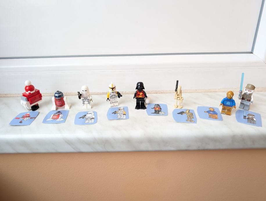 Set sadrži 8 LEGO Star Wars likova, uključujući C-3PO i R2-D2 u blagdanskim džemperima ukrašenim portretima jednog i drugog, Gonk Droida odjevenog kao Djed Božićnjak i Dartha Vadera u ljetnoj odjeći iz LEGO Star Wars Ljetnog odmora sa Disney+.