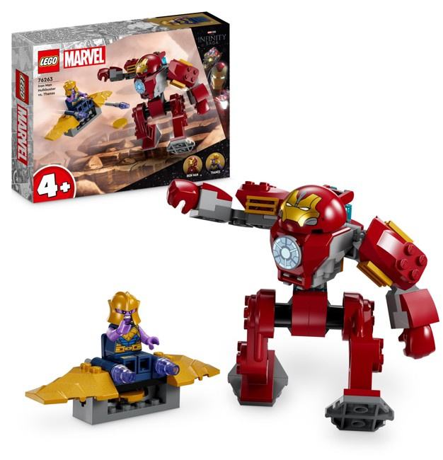 LEGO® Marvel Iron Man Hulkbuster vs. Thanos (76263) features the iconic characters and their awesome technology in a buildable playset created for kids aged 4+.The best start for kidsBased on Marvel Studios’ Avengers: Infinity War, this playset brings Super Hero Iron Man and his mech together with super villain Thanos and his aircraft. The Hulkbuster mech is fully posable and includes a seat for the Iron Man minifigure. The aircraft has an attached disc shooter and a seat for the Thanos minifigure. Inside the box, each bag of bricks contains a complete model and character that kids can assemble for play right away. A colourful picture-story serves as a build-and-play guide, and 2 mech-leg Starter Bricks simplify construction. For added digital fun, builders can zoom in, rotate sets in 3D and track their progress using the fun, intuitive LEGO Builder app.Family fun4+ sets are the perfect way for adults to share the building fun with youngsters.Imaginative play for young Super Heroes – LEGO® Marvel Iron Man Hulkbuster vs. Thanos (76263) puts classic Super Hero action into the hands of youngsters aged 4 and overIconic characters – Includes Iron Man with his Hulkbuster mech and Thanos with his aircraft. A Starter Brick ensures the build-and-play fun can start right awayBattle action – The Hulkbuster mech is fully posable and includes a seat for the Iron Man minifigure. The aircraft has an attached disc shooter and a seat for the Thanos minifigureGift for kids aged 4+ – This birthday, Christmas or any-day treat includes Starter Bricks and simple building steps to support and strengthen essential developmental skillsPortable fun – The Hulkbuster stands over 11 cm (4.5 in.) tall and the aircraft measures over 9 cm (3.5 in.) wide, so kids can easily pick it up and take the action wherever they goInspire young minds – LEGO® 4+ sets introduce children to a wide universe of film favourites, TV characters and everyday heroesQuality guaranteed – LEGO® components fulfil stringent industry quality standards to ensure they are consistent, compatible and connect and pull apart easily every timeSafety assured – LEGO® components are dropped, heated, crushed, twisted and analysed to make sure they satisfy rigorous global safety standards