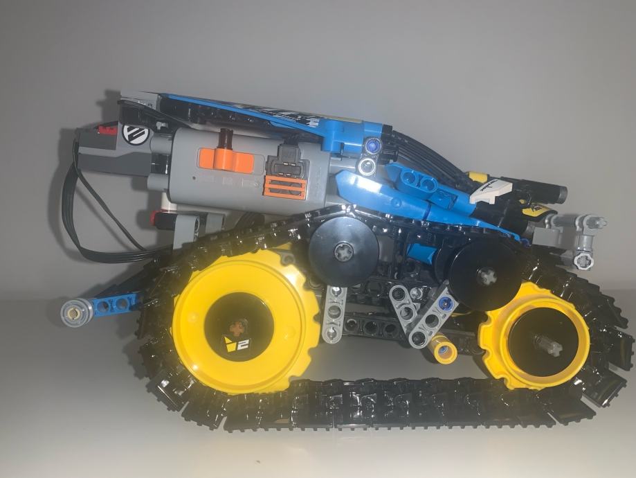 Pripremi se da isprobaš snažni LEGO® Technic Egzibicijski trkač na daljinsko upravljanje futurističkog dizajna s golemim gumama koje prianjaju uz tlo i velikim stražnjim zupčanicima za najveće ubrzanje! Uzmi daljinski upravljač i daj gas za opaku vožnju na stražnjim kotačima, vožnju preko prepreka te okrete i nagla skretanja dok voziš unaprijed ili unatrag. Ovo nevjerojatno 2-u-1 motorno vozilo za djecu dolazi u svijetloj kombinaciji žute i plave boje, a može se pretvoriti u sjajni trkač na daljinsko upravljanje!