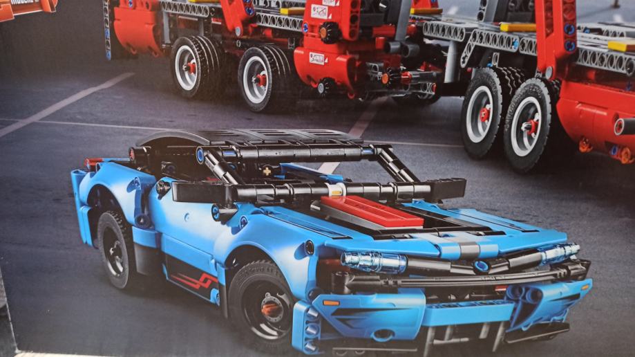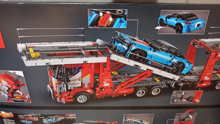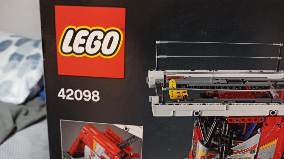 Novi, neotvarani, originalno zapakirani LEGO Technic 42098 - Car Transporter set. Radi se o ogromnom Technic setu iz kojeg se pored kamiona za transport auta može složiti i puno drugih modela kao što je kamion za odvoz smeća, vatrogasno vozilo, pick up kamionet sa prikilicom itd.