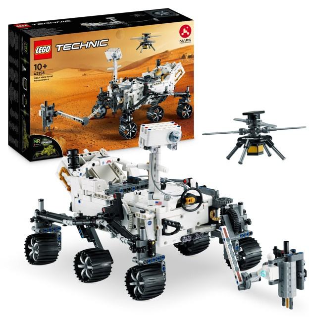 Give kids an adventure to remember as they build a LEGO® Technic™ toy version of NASA’s Mars Perseverance Rover (42158). This building project is perfect for kids with a passion for science and technology and comes with an augmented reality app experience that lets them learn more about the environment on Mars and the rover’s mission.A voyage to MarsThis model toy is packed with features that help kids learn more about the challenges facing the NASA Perseverance Rover and its companion helicopter Ingenuity. The rover features 360° steering and a movable arm, plus fully articulated suspension that lets the vehicle maintain traction on all 6 wheels across uneven surfaces. Other buildable details include a power unit, antennae, cameras and scientific instruments.Intuitive instructionsLet the LEGO Builder app guide your youngster on an intuitive building adventure, allowing them to zoom in and rotate models in 3D, save sets and track their progress.Feed a passion for science and technology – Kids aged 10+ can learn more about the challenges of space exploration with this LEGO® Technic™ NASA Mars Rover Perseverance (42158) model toyConduct a test flight – This set includes a buildable toy version of NASA’s Ingenuity helicopter, which accompanied the Perseverance Rover and was used to test powered flight on MarsAR brings the mission to life – The accompanying augmented reality app experience lets kids dive into the details of the rover and its missionExplore the functions – Features 360° steering, movable arms and fully articulated suspension that lets the vehicle travel across uneven surfaces, plus buildable scientific instrumentsA gift for kids aged 10+ – This Mars Perseverance Rover toy set makes a gift idea for kids with a passion for space exploration or science and technology projectsMeasurements – This LEGO® Technic™ building set measures over 9 in. (23 cm) high, 12.5 in. (32 cm) long and 9 in. (23 cm)wideA helping hand – Discover intuitive instructions in the LEGO® Builder app where builders can zoom in and rotate models in 3D, track their progress and save sets as they develop new skillsAn introduction to engineering – LEGO® Technic™ buildable model sets feature realistic movement and mechanisms that introduce young LEGO builders to the universe of engineeringHigh quality – LEGO® Technic™ components meet rigorous industry standards to ensure they are consistent, compatible and connect reliably every timeSafety first – LEGO® Technic™ components are dropped, heated, crushed, twisted and analyzed to make sure they meet strict global safety standards
