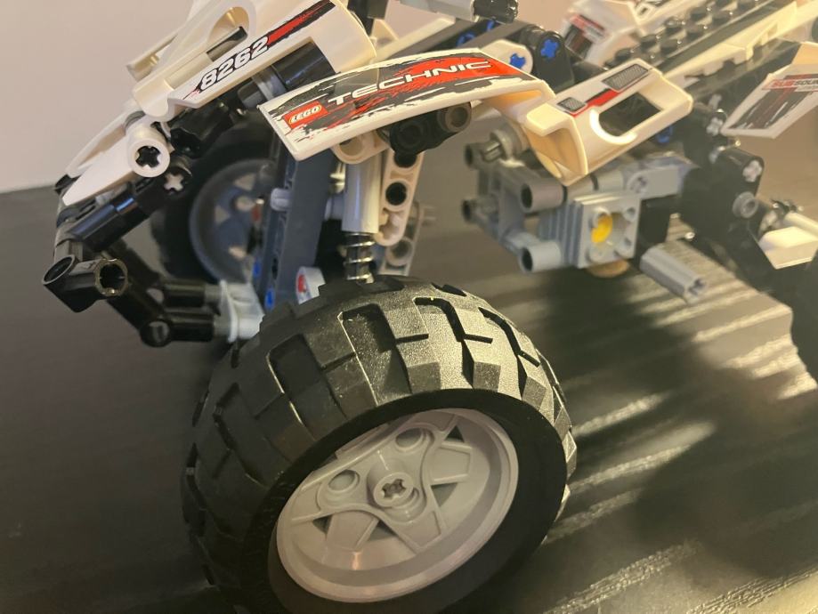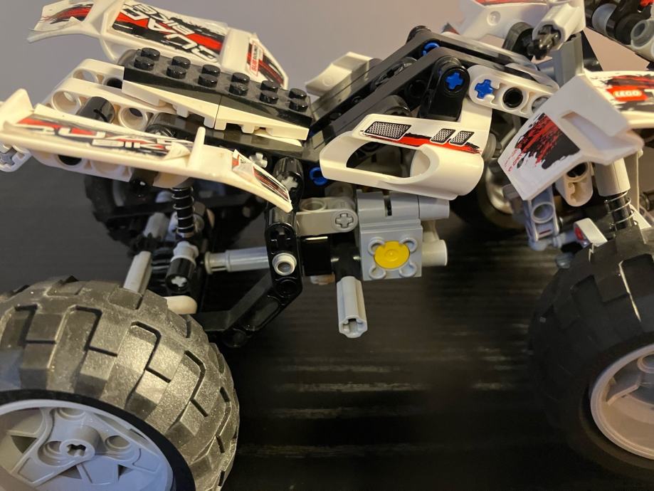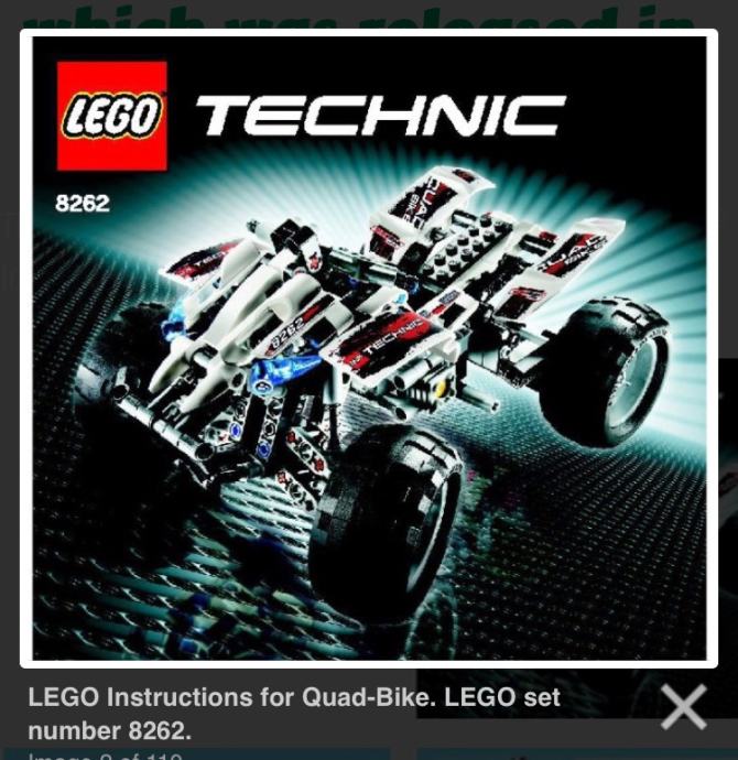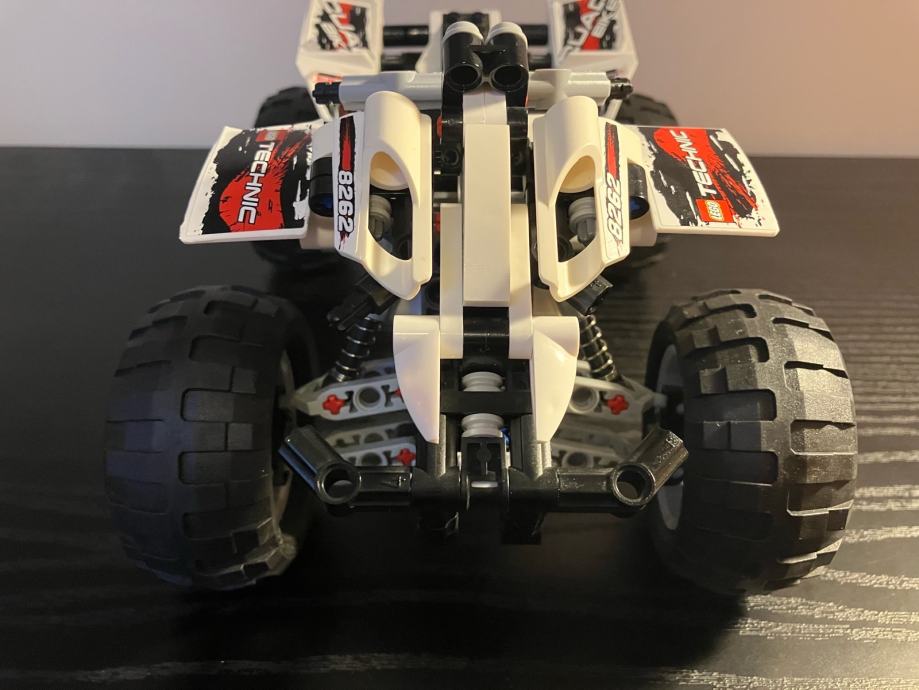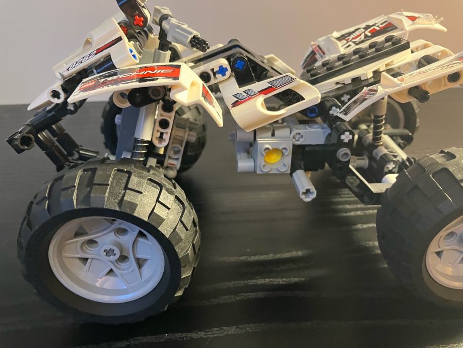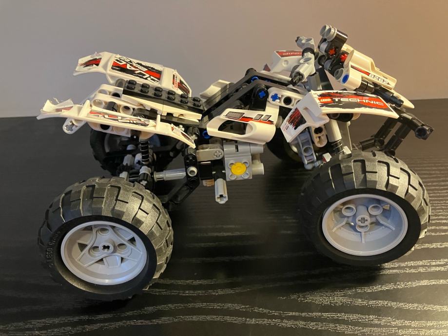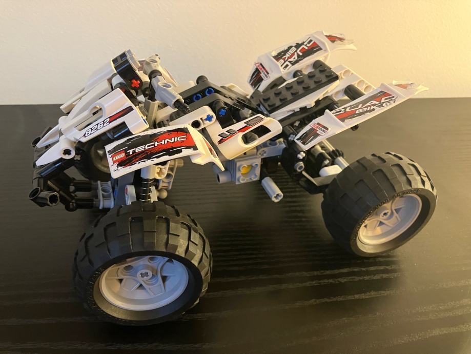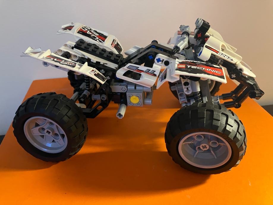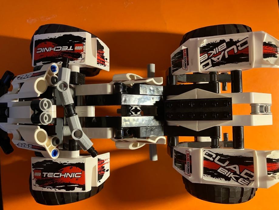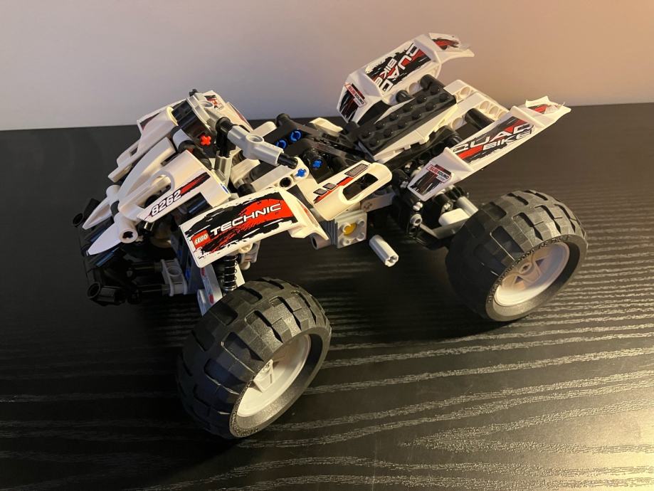 Lego Technic Quad-Bike 8262, prodaje se u složenom stanju kao na slikama-18 fotografija je u oglasu. Kutiju i instrukcije više nemam ali se mogu skinuti sa Lego stranice. Nedostaju dvije polugice (2 kockice) koje s donje strane spajaju prednje kotače sa ručkama koje ne utječu na izgled i čvrstoću seta. Cijena je je 18 EUR za osobno preuzimanje u Popovači ili Ivanić Gradu. Troškovi slanja su dodatna 4 EUR Tiskom ili 5,5 EUR Poštom za unaprijed uplatu na račun ili 7 EUR Poštom za plaćanje pouzećem. Pakiram tako da je sigurno u transportu.Odgovaram na pozive, poruke putem Njuškala, SMS, Viber.