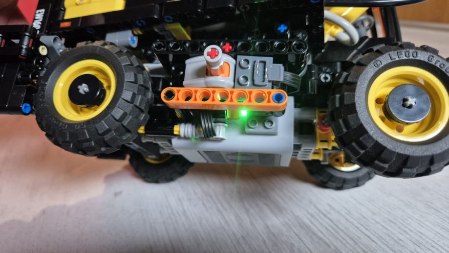 Dolazi Motoriziran: Box s baterijama, motor i switch (elektronika nije original Lego).