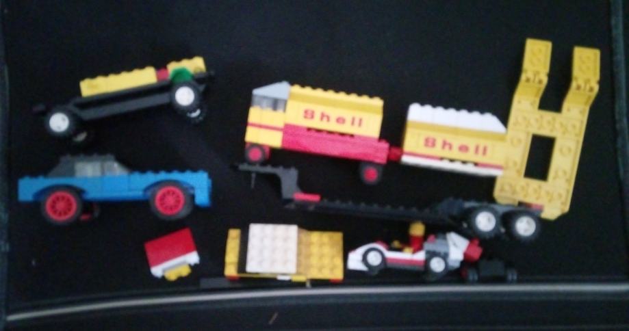Shell cisterna , plavi Auto i slep prikolica Su sigurno stari, ovaj trkaci je nešto noviji. Samo u kompletu, povoljno.