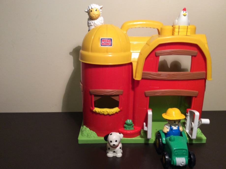 Prodajem Mega Bloks kućicu farmu sa 25 kockica za slaganje i četri figurice i traktorom.