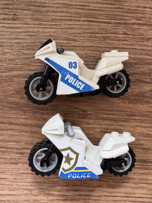 Motorcycle Sport Bike with Black Windshield Pattern, Black Frame, Light Bluish Gray Wheels and Dark Bluish Gray Handlebars with Gold Badge with '03' and 'POLICE' Pattern on Both Sides (Stickers) - Set 60139