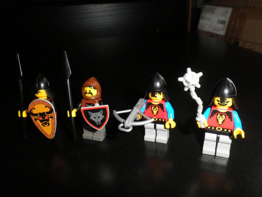 Prodajem original lego figure, vitezovi sa oružjem i opremom. Cijena prva dva viteza koji imaju oružje i štit je 65 kn komad ( ovaj što ima kapuljaču i vučji štit je prodan ), a druga dva koji imaju samo oružje je 60 kn komad. Poštarina je 20 kn bez obzira na broj figura koje kupite iz mojih oglasa. Pogledajte i moje druge oglase sa lego castle figurama.