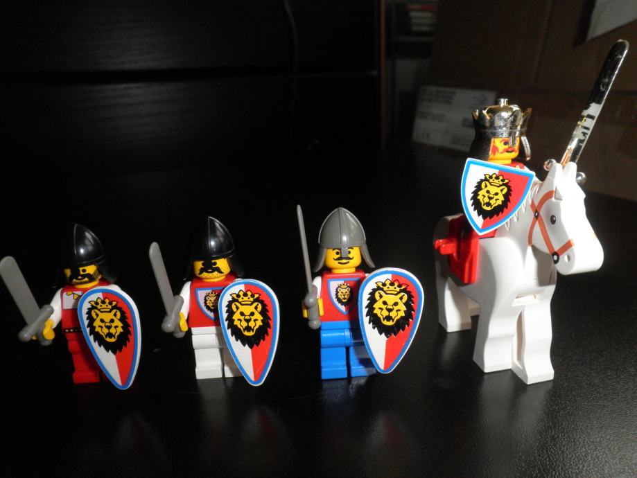 Prodajem original lego figure, lavlji vitezovi sa oružjem i štitovima i kralj na konju sa mačem i štitom ( kralj na konju sa mačem i štitom je prodan ). Cijena pojedinačnog viteza je 65 kn komad, cijena kralja sa konjem 90 kn. Poštarina je 20 kn bez obzira na broj figura koje kupite iz mojih oglasa. Pogledajte i moje druge oglase sa lego castle figurama.