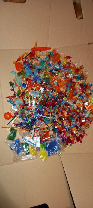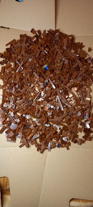 Prodajem Lego kockice u rasutom stanju. Radi se o par kilograma sortiranih kockica u tri boje: smeđoj, tamnocrvnoj i bež/pješčanoj te Zelenilo i razna stakalca.Sve su originalne Lego kockice raznih oblika i veličina, uključujući standardne kockice, pločice i razne specijalne dijelove. Kockice su rabljene ali ucuvane