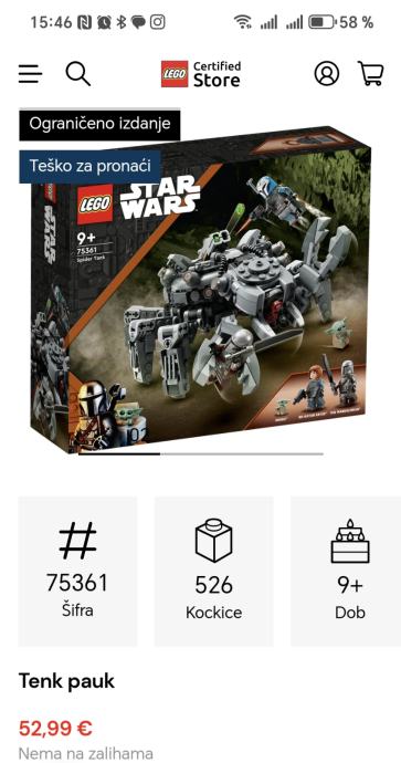 Prodajem LEGO Star Wars 75361 Spider Tank...Novo i neotvoreno.