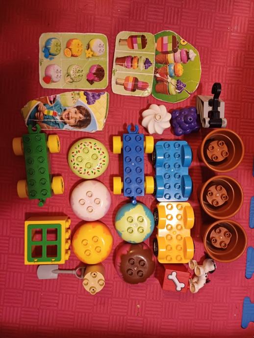 Prodajem punu kutiju lego duplo kockica. Tu su i setovi mačka, pas, sladoledi i sl..... Uz kockice poklanjam 2 velike zelene ploče te jednu manju i kutiju s kotačima.