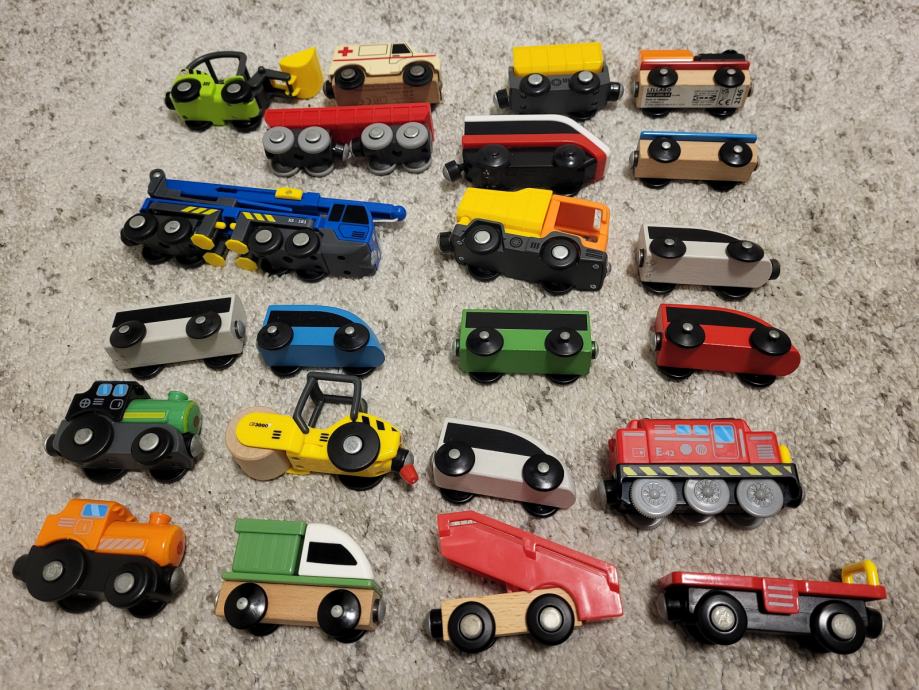 Velik set drvenih pruga i raznih dodataka kupljenih u ikei i lidlu. Sve u odličnom stanju. Može se sve zajedno složiti da ništa nije višak.