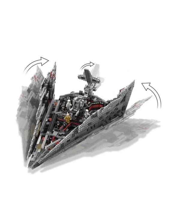 Pridružite se vrhovnom vođi Snokey, koji upravlja galaksijom, na moćnom first order star destroyeru! Pucajte s laserima kako biste prevladali neprijateljske brodove, a zatim otvorite ploče tako da se možete igrati u razaraču. S dizalom se odvezite u Snukijev komandni centar i i izdajte naredbe mini hologramu. Usmjerite flotu s upravljačkog mosta, pripremite se za bitku u sobi za sastanke, uzmite droide na brodu i upravljajte cijelim zvjezdanim brodom iz kontrolne sobe. Kada ste spremni za kretanje, zgrabite ručku na vrhu i s hiperbrzinom uletite u akciju!