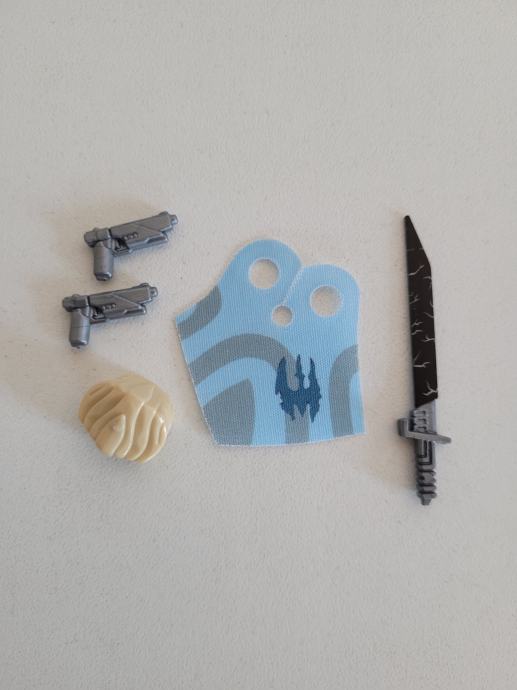 Uz figuricu poklanjam custom zamjenski plašt, custom 2 x Westar 35 blastera i custom Darksaber.