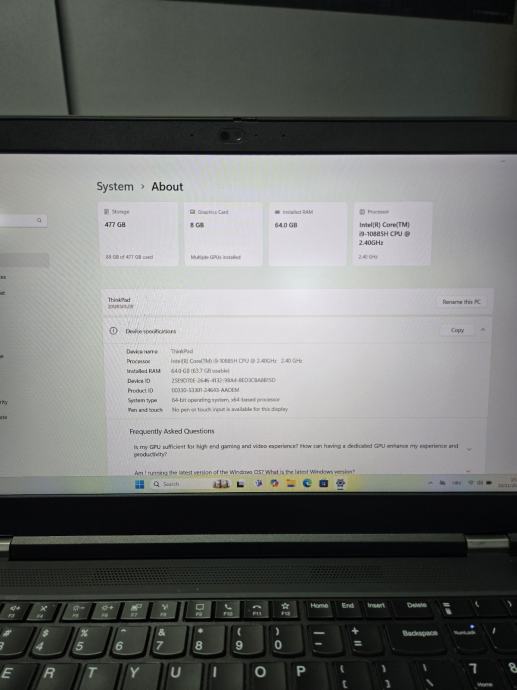 Lenovo ThinkPad T15g gen 1 , i9-10gen , 64GB , 512GB , RTX 2080 ...