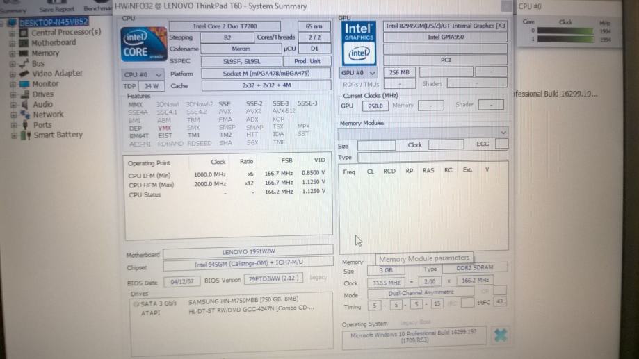 IBM Lenovo Thinkpad T60, 3GB RAM, 2x2GHz dual c., HDD 750GB, ekran 14"