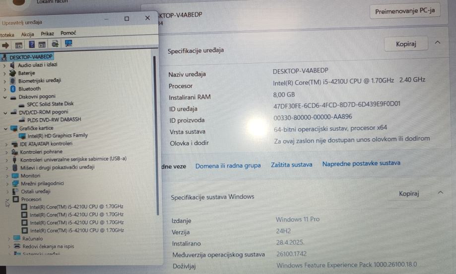 "Instalirani Windows 11 professional HR ...digitalna licenca u laptopu"