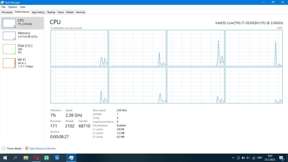 - Intel i7 2630qm 4c/8t (2,00-2,90Ghz)
