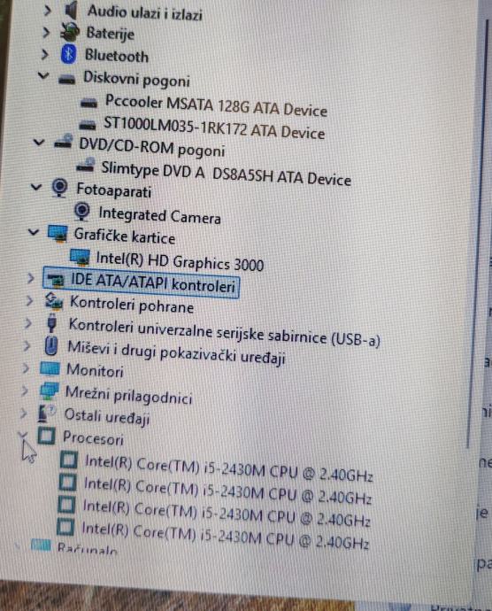 Prodajem ispravan profesionalan laptop s i5 cpu m2ssd I još jednim 500gb hdd