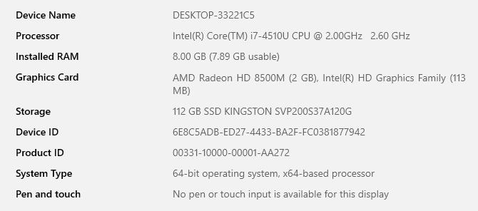 Storage: 112 GB SSD Kingston SVP200S37A120G