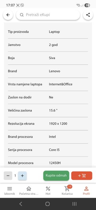 Laptop je kupljen 2.8.2025. ima garanciju,račun,original kutiju i sve što pripada uz njega.