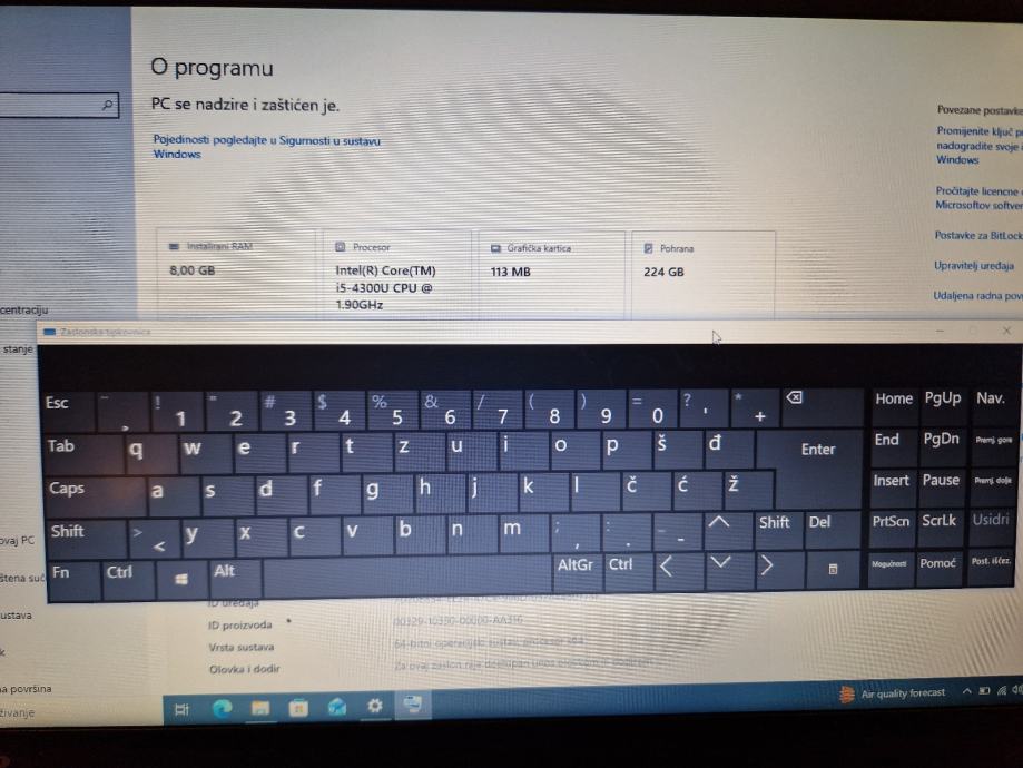 Jedina mana je slovo i , ne radi, treba ga otvoriti i očistiti.... a do tada možete koristiti virtualnu tipkovnicu koja je ugrađena u W10