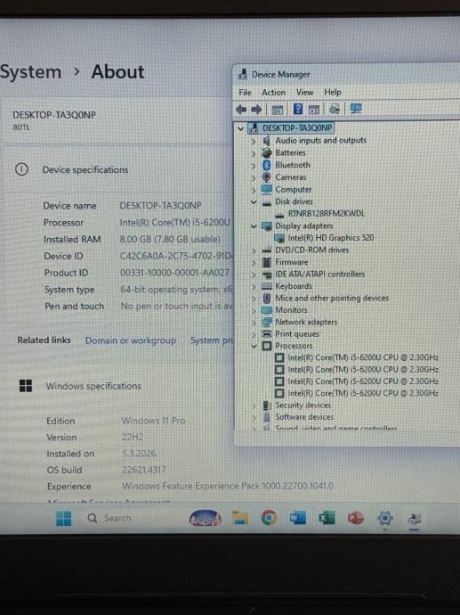 -CPU: Intel i5-6200U