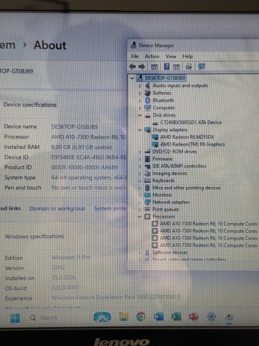 Lenovo (AMD A10,8GB RAM,256GB SSD,2xGPU,WIN11)
