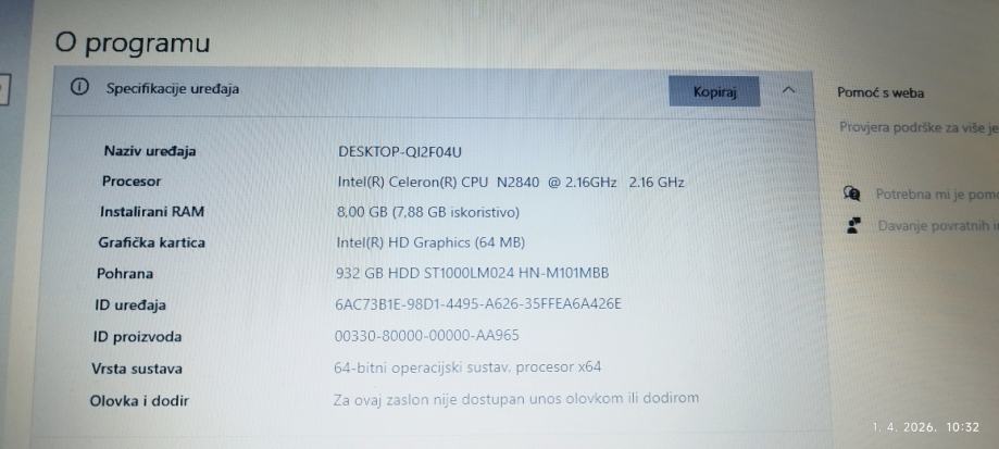 Sve ostalo na laptopu OK