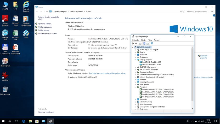 Instaliran originalni Windows 10 sa svim pratećim programima.