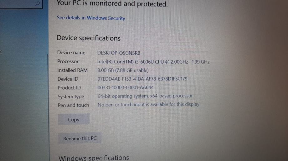 ⏺Procesor: i3-6006U