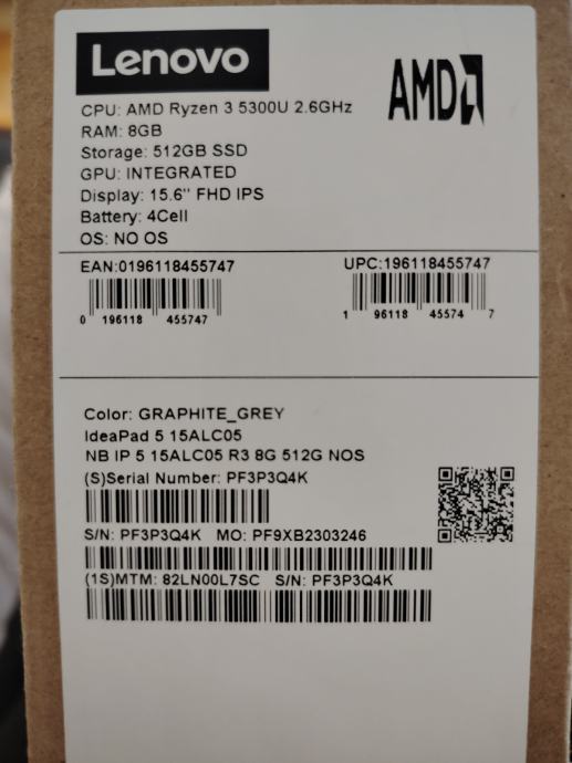 Lenovo IdeaPad 5 15ALC05, Ryzen 3 5300U, 8GB RAM, 512GB SSD, Win 11