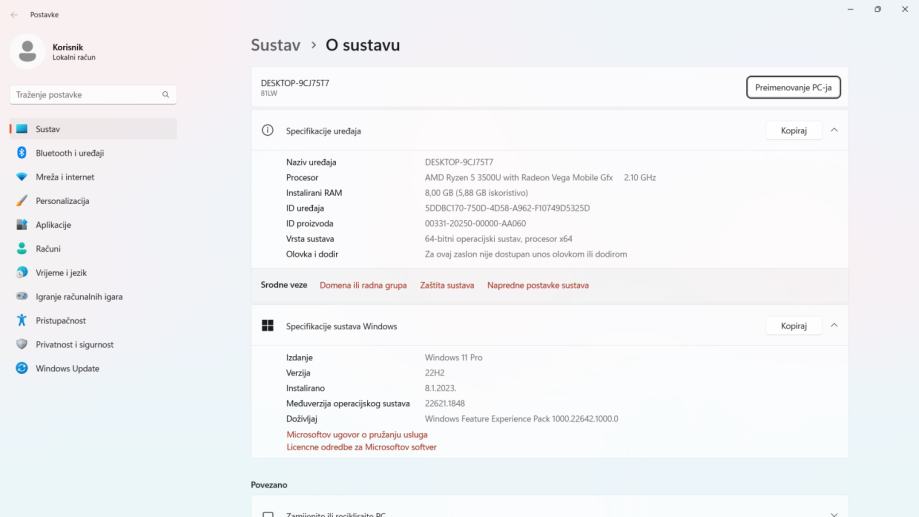 Windows 11 sa original ključem dobivenim kod kupnje laptopa.