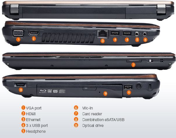 Ports: 2x USB 3.0, 1x USB 2.0, 1x USB 2.0/eSATA combo, HDMI, VGA, Ethernet, headphone and microphone jacks