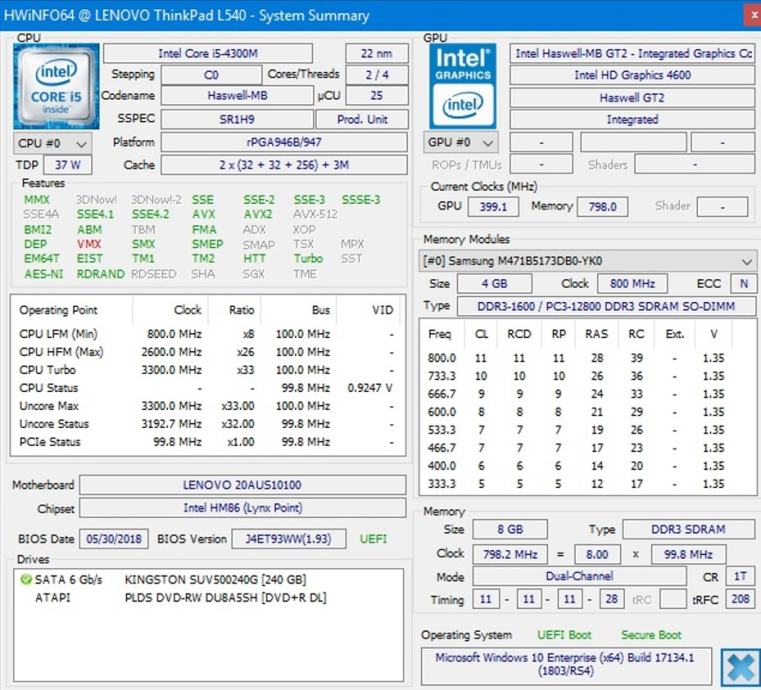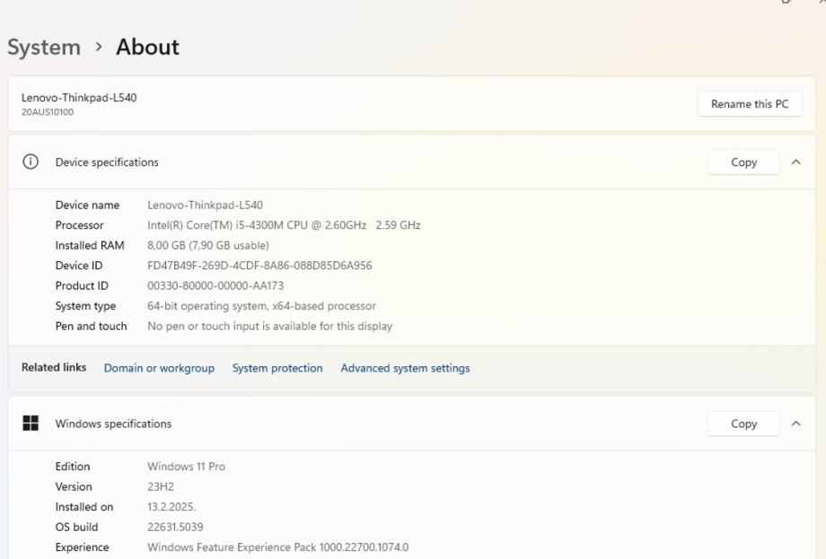 Lenovo L540 i5-4300M,8GB-DDR3,256GB SSD, Win11 pro x64, Office 2019