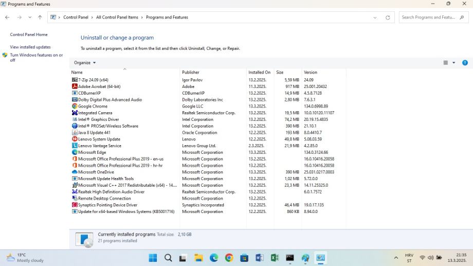 Ostali programi: Google Chrome, 7-zip za komprimirane datoteke, Adobe Reader DC, CDBurnerXP za prženje, Java