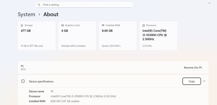 - i5 procesor 10. generacije, 8GB RAM, 512GB SSD