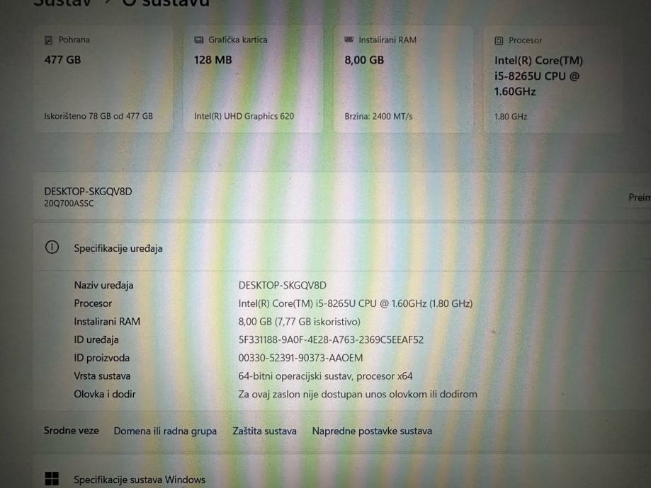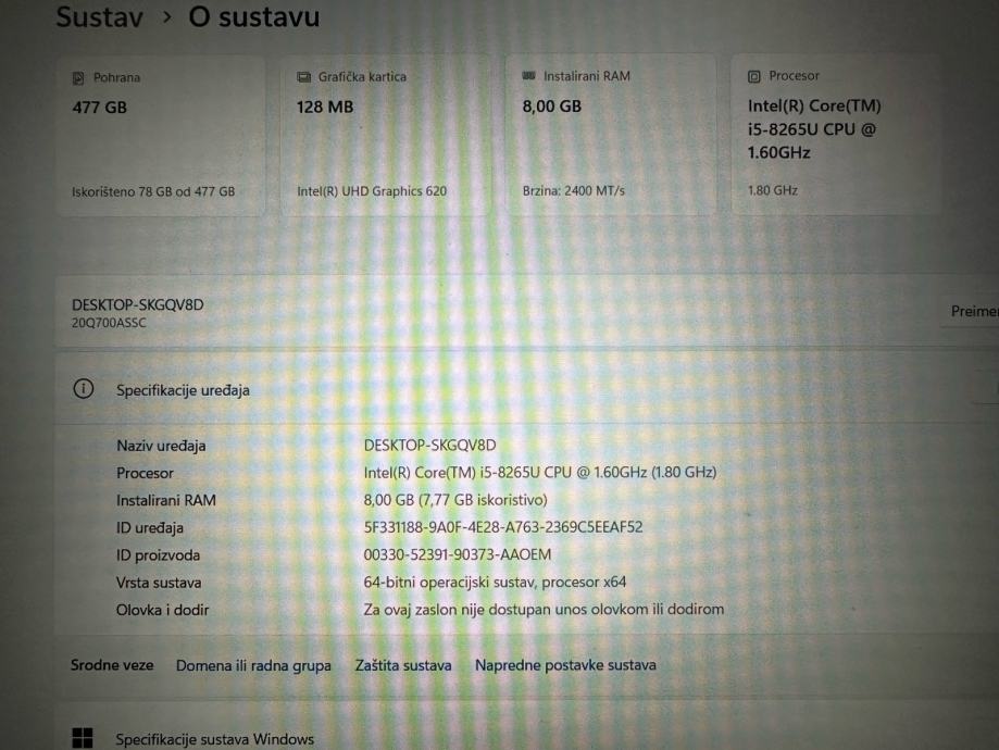 Prodajem rabljeni Lenovo L590 laptop s Intel Core i5 procesorom i 8GB RAM-a. Računalo ima 477GB prostora za pohranu i savršeno je za svakodnevni rad i multimediju. BEZ PUNJAČA