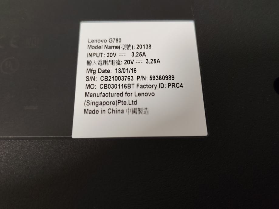 LENOVO Laptop G780 + PUNJAČ
