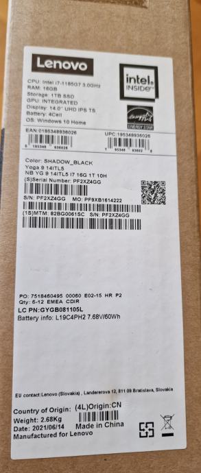 Lenovo Yoga 9 14ITL5, Windows 10 Home, Intel i7 1185G7 3,0 GHz, Core 4, 16 GB, 14" FHD Touch , SSD 1 TB M.2 PCIe NVMe, Intel Iris Xe, 802.11ax, BT 5.1, 1,44 kg, Boja Crna, TPM, 2xThunderbolt 4, 1xUSB 3.2