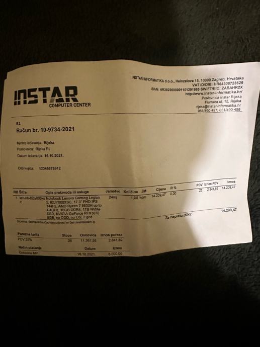 Prodaje se laptop iz naslova kupljen 16.10.2021 u Instaru.