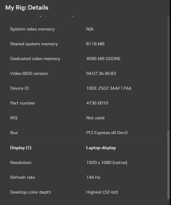 NVIDIA GeForce RTX 3050 4Gb 1500 MHz