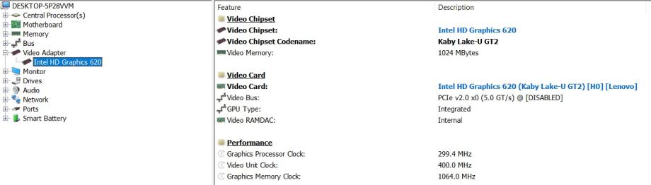 Grafička : integrirana Intel® HD Graphics 620 Kaby Lake-U GT2