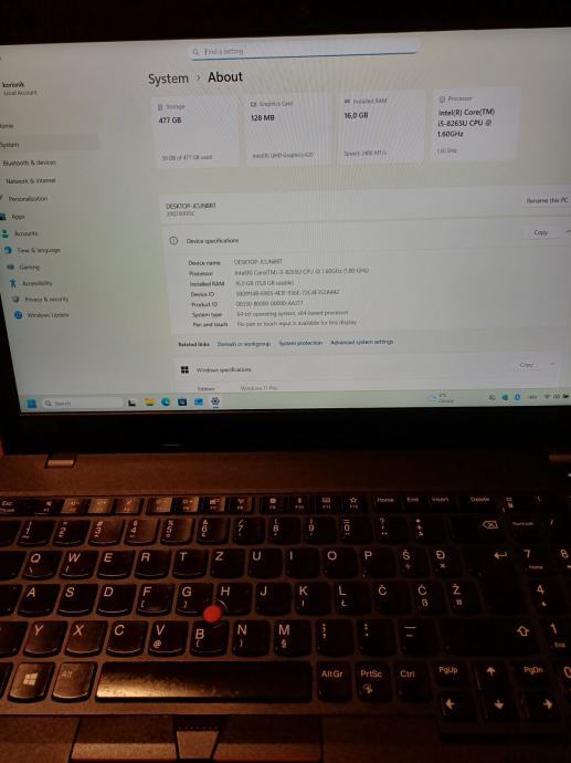 Prijenosno računalo ThinkPad L590 , Intel i5-8265U , TURBO 3.9 GHz , Intel UHD 620 grafika , 16 GB DDR4 , SSD M.2 512 GB PCIExpress 3.0 x 4 NVMe , DOLBY PREMIUM audio , ekran FHD IPS 1920 x 1080 , HDMI , HR tipkovnica OSVIJETLJENA , baterija u vrhunskom stanju na 87% , puni se na 100% , traje oko 8h ovisno o načinu rada , USB 3.1 x 2 , izuzetno očuvan , bez ogrebotina i tragova korištenja na tipkovnici i touchpad , KAO NOVI , punjač original Lenovo 65W USB-C , instaliran Windows 11 PRO , licenca