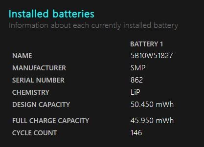 Baterija: 146 ciklusa, 91% health