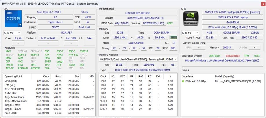 CPU: Intel Core i7-11800H - 8-core/16-threads - 2.3/4.6 GHz