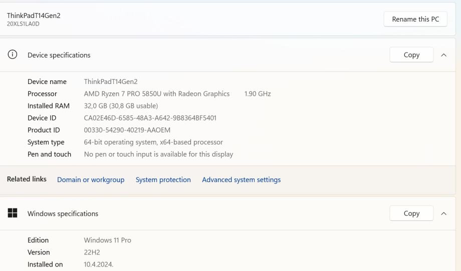 Prodajem laptop Lenovo Thinkpad T14 1Gen: