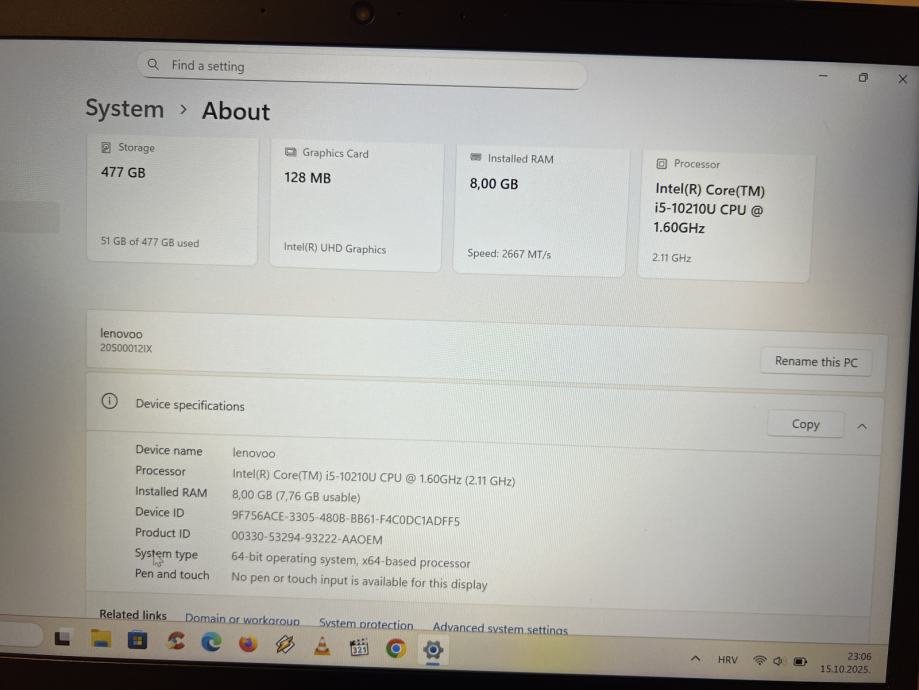 Ekran 14″ Full HD (1920 × 1080), mat završetak