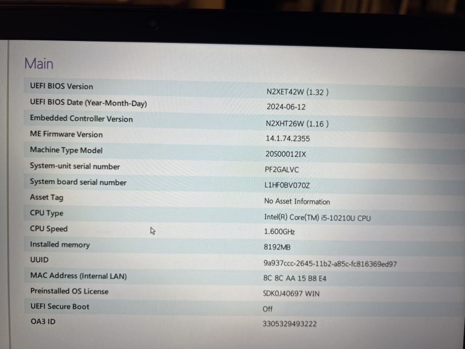 Lenovo ThinkPad T14 Gen 1 i5-10210U 8GB 512GB