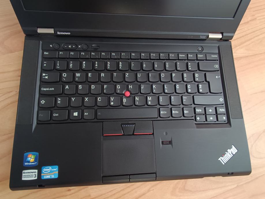 Prodaje se navedeni vrhunski poslovni laptop LENOVO THINKPAD T430. Snažan core i5 procesor, Laptop u dobrom stanju, kvalitetno kuciste, manji standardni tragovi koristenja na plastikama. Baterija cca sat vremena traje u testovima na filmovima. Ima ugrađenu zasebnu LED lampicu za osvjetljenje tipkovnice.